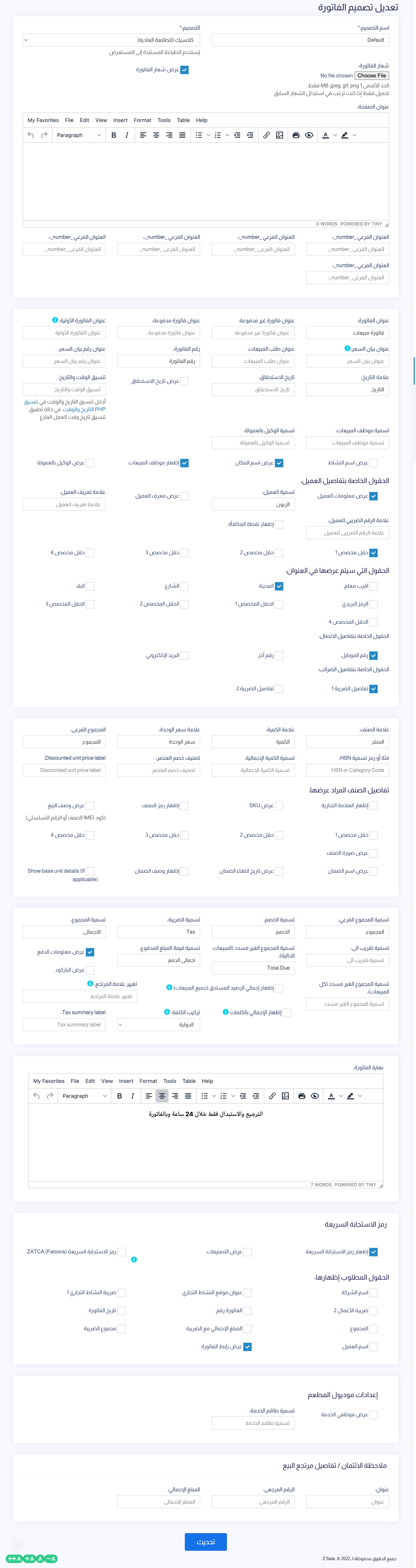يمكن من هنا التحكم الكامل بشكل ومحتويات الفاتورة