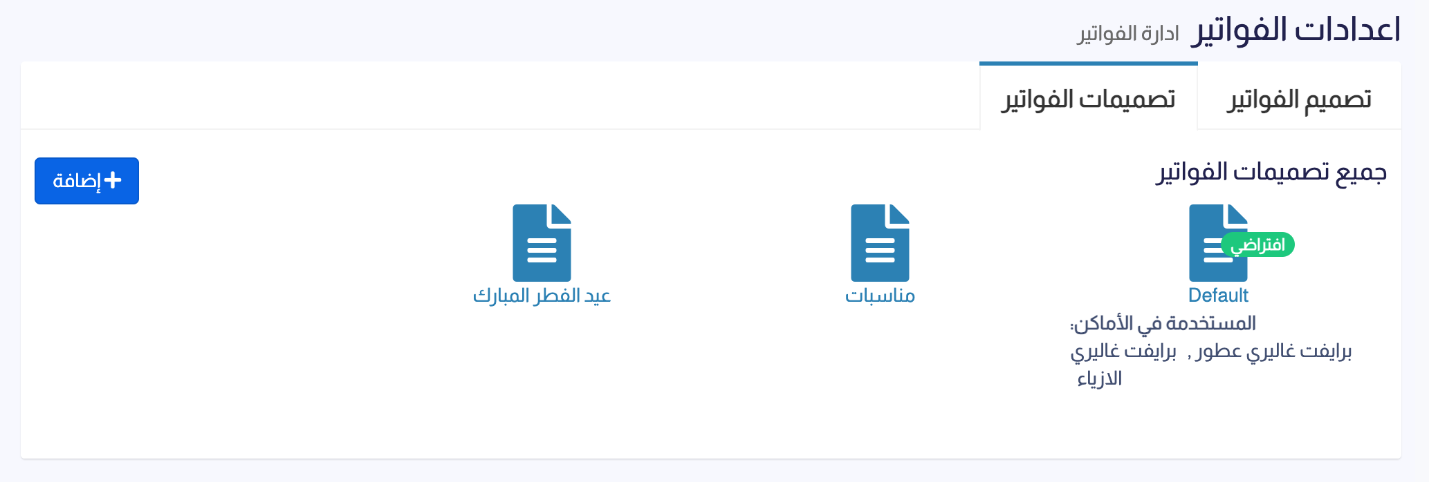 يمكن من خلال اعدادات الفواتير اضافة عدة تصاميم للفاتورة ويمكن تعيين بعض التصاميم لفروع معينة